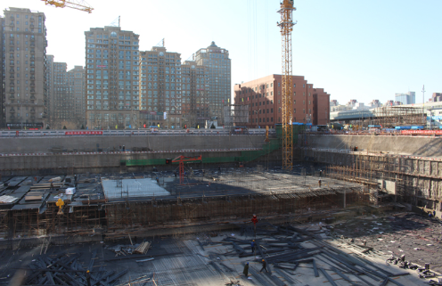 本工程位于北京市朝陽區(qū)大屯地區(qū),北苑路和五南路交叉口的東北側(cè)。擬開挖基坑南北長約109m,東西長約140m,基坑開挖深度最深達(dá)-20.75m。場區(qū)東側(cè)緊貼融華世家住宅小區(qū)的圍墻,南面為市政道路,西側(cè)為總包方材料加工區(qū)域,北側(cè)距離既有的城管辦公樓僅1.5m,邊界條件非常復(fù)雜,對于支護(hù)工程的安全和文明施工要求很高。